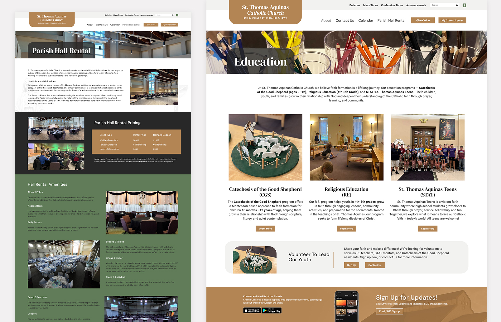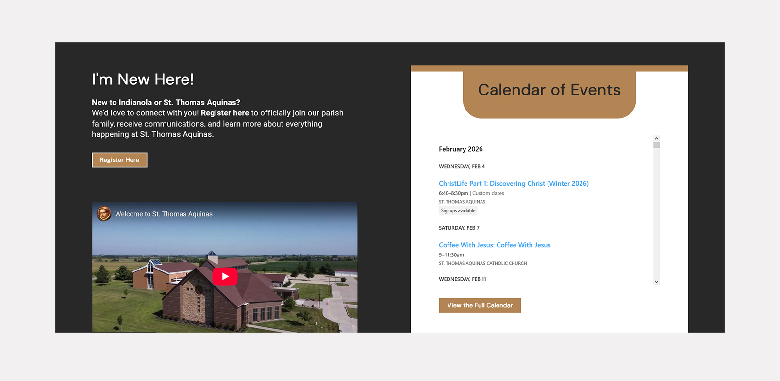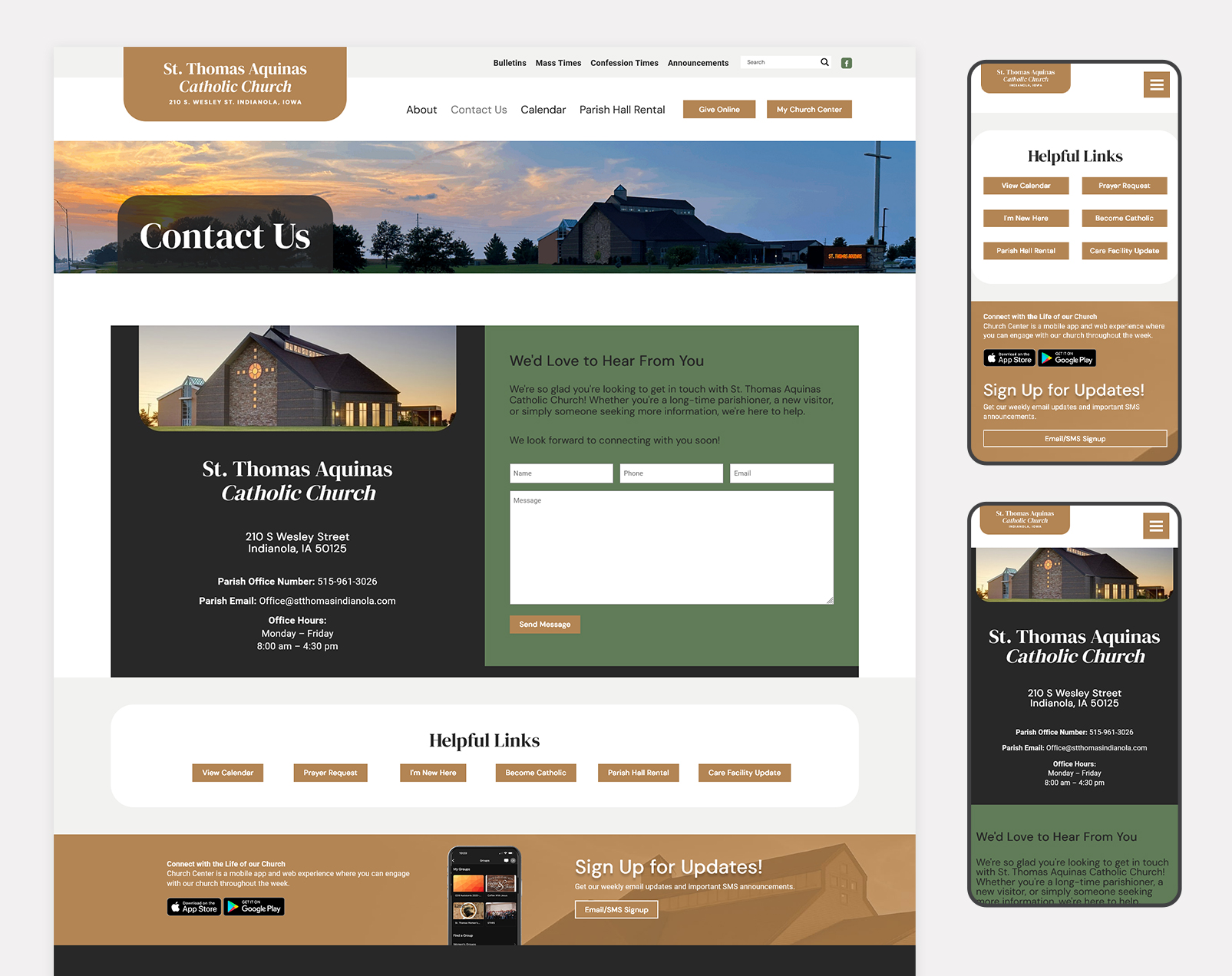 The new website highlights St. Thomas Aquinas’ vibrant parish life, including Mass times, ministries, events, and opportunities for involvement. With a clean, approachable interface and thoughtful organization, the site ensures that families, members, and newcomers can quickly find what they need and stay connected. This launch provides the church with a strong online tool to support communication, encourage engagement, and strengthen its outreach within the local community.